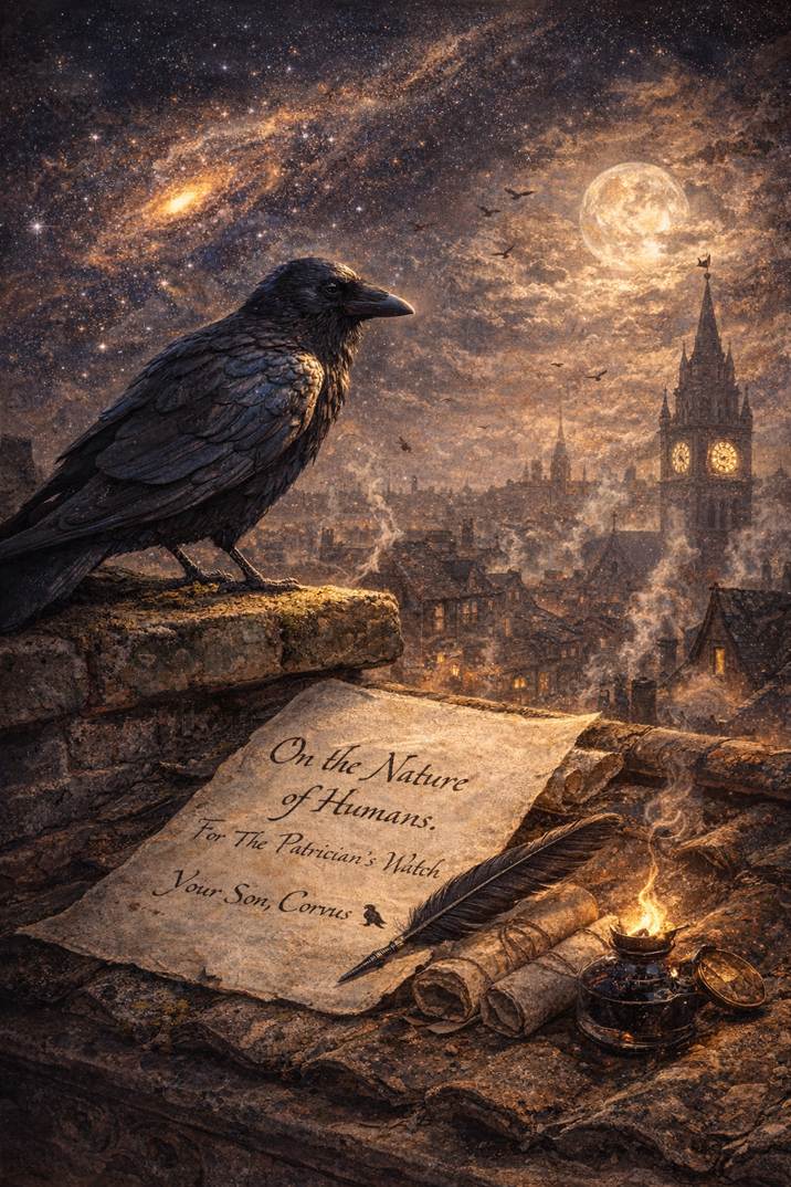 “On the Nature of Humans.” For The Patrician’s Watch. For anyone who needs to hear what a crow has learned.