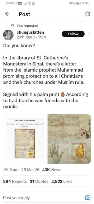 Scholarly debate: Some Western historians have questioned the document’s authenticity, noting that the earliest surviving copy dates from the 9th century—about 200 years after Muhammad’s death. But most Islamic and Byzantine scholars accept it as authentic, pointing to: